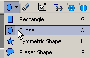 | PSP7. Open the "Preset Shapes" tool and find the "Ellipse" in the drop down menu. PSP 9 Choose the "Ellipse" tool from the toolbar. Don't forget to have "Create as Vector" activated. |