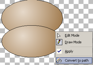 Draw another ellipse for the left ear. Rename it's layer to "ear", Convert to path |
