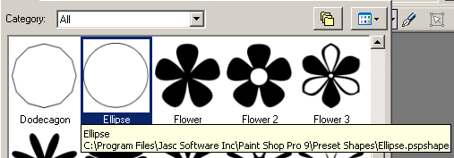 Using the preset shapes tool choose the ellipse shape set to Anti-alias and Create on Vector.![]() |