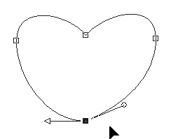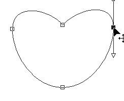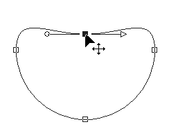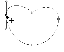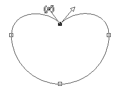 | Draw a circle and start "Node Edit" Don't forget to "Convert to Path" in PSP9 ![]() | Drag the top node downwards and change the node type of the top and bottom nodes to "Cusp" ![]() |