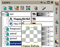 This is the part where you save lots of time. If we imagine that the graphic was something special and we want to use it for someone elses birthday it is a very simple matter to change the name. Simply double click the text layer. It is very easy to find because the beginning of the text shows in the layer palette ![]() The original text entry palette opens up and we can change the text. If we wish we can also change font, color, and anything else available on the text palette.