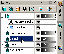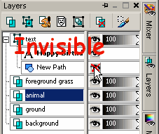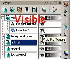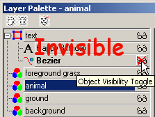 | To make a layer invisible Click the "Visibility toggle" in the "Layers" palette. |