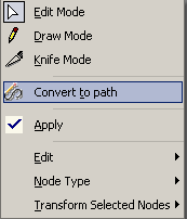 Click "Node Edit" in the "Tool Options" palette. | Right click on the shape.![]() If "Convert to path" is not blanked out click it now. | |