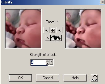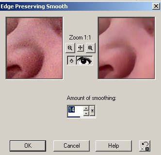 Because we all start to lose that healthy glow of youth somewhere in our twenties this next tool is of great importance if we want to flatter the people we photograph. It also helps when you take a picture in low light and get a grainy effect on what would otherwise be a nice smooth surface. I will not embarrass anyone by showing a before and after picture of any of my friends. (The after I could get away with but if I value my friendship the before is taboo.) Give this a try on a portrait of someone over 40. For this tutorial I will go with a baby picture taken without flash so as not to wake the baby. The light was too low so it needs some fixing up.