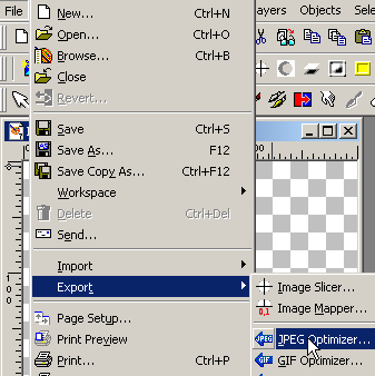 | There are two ways to find the Jpeg Optimizer. Go to "File" > "Export" > "Jpeg Optimizer"