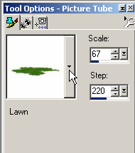 Apply the tube one at a time or continueously by dragging over the canvas. The "Step" control is the amount of pixels between each tube when dragging. |