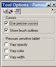 First on the "Tool Options" panel set the cursor options as shown.