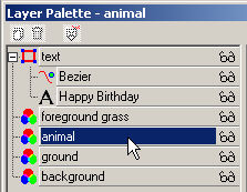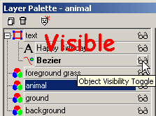 | To make a layer invisible Click the "Visibility toggle" in the "Layers" palette. |
