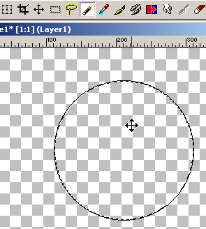 Open a new image about 300 x 300 Transparent Background 1.7 Million colors. On the 'Color Palette' set the foreground to Black and turn off the background. With the 'Preset Shapes' tool set as shown draw a circle 200 x 200 pixels. |