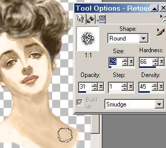 With the retouch tool set to Smudge as above drag the raw edges of the picture off the edge to feather it and make it look like a painting would. |