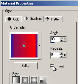 ![]() Now click the "Fill" box to bring up the color palette. (In PSP 7 you have to choose the gradient separately as usual ) ![]() In this case I made my own gradient to fill the graphic but any of the normal choices are available. (Solid, Gradient, Pattern, and Texture ) ![]() And this is the final result. ![]() As you can see there are very few nodes. I like to keep the nodes down to as few as possible making a smooth finished appearance. You will find that with skillfull handling of node handles even double curves can be adjusted to the perfect shape. |