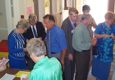 Jim Pearson registering and buying a raffle ticket.