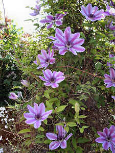The 'Nellie Moser' clamatis covers the obelisk with its huge flowers. -----------------------------------------------END CONTENT-----------------------------------------------------/> |
