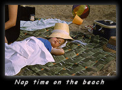 Dave and Mike played in the water and met friends of their own ages. They played with buckets and spades making sand castles and every now and then Mike flaked out for a nap.When it came time to leave, the car was fixed and we were assured we would have no problems on the way home. The only problem we had before leaving was putting up with a sulking, pouting teenager who thought we should stay another week. The trip home was uneventful with five tanned people singing songs and planning our next vacation.